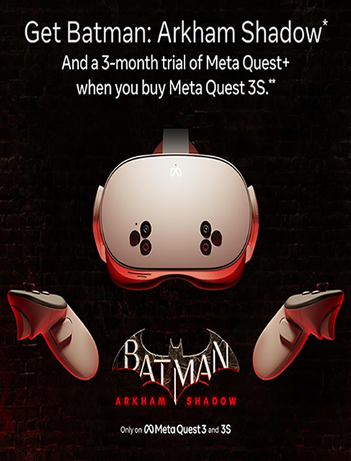 1. შეცვალეთ თქვენი რეალობა და გააკეთეთ ყველაფერი, რაც გიყვართ სრულიად ახალი გზებით. კეთილი იყოს თქვენი მობრძანება Meta Quest 3S-ში. ახლა თქვენ შეგიძლიათ მიიღოთ Batman: Arkham Shadow* და Meta Horizon+-ის 3-თვიანი საცდელი პერიოდი**.